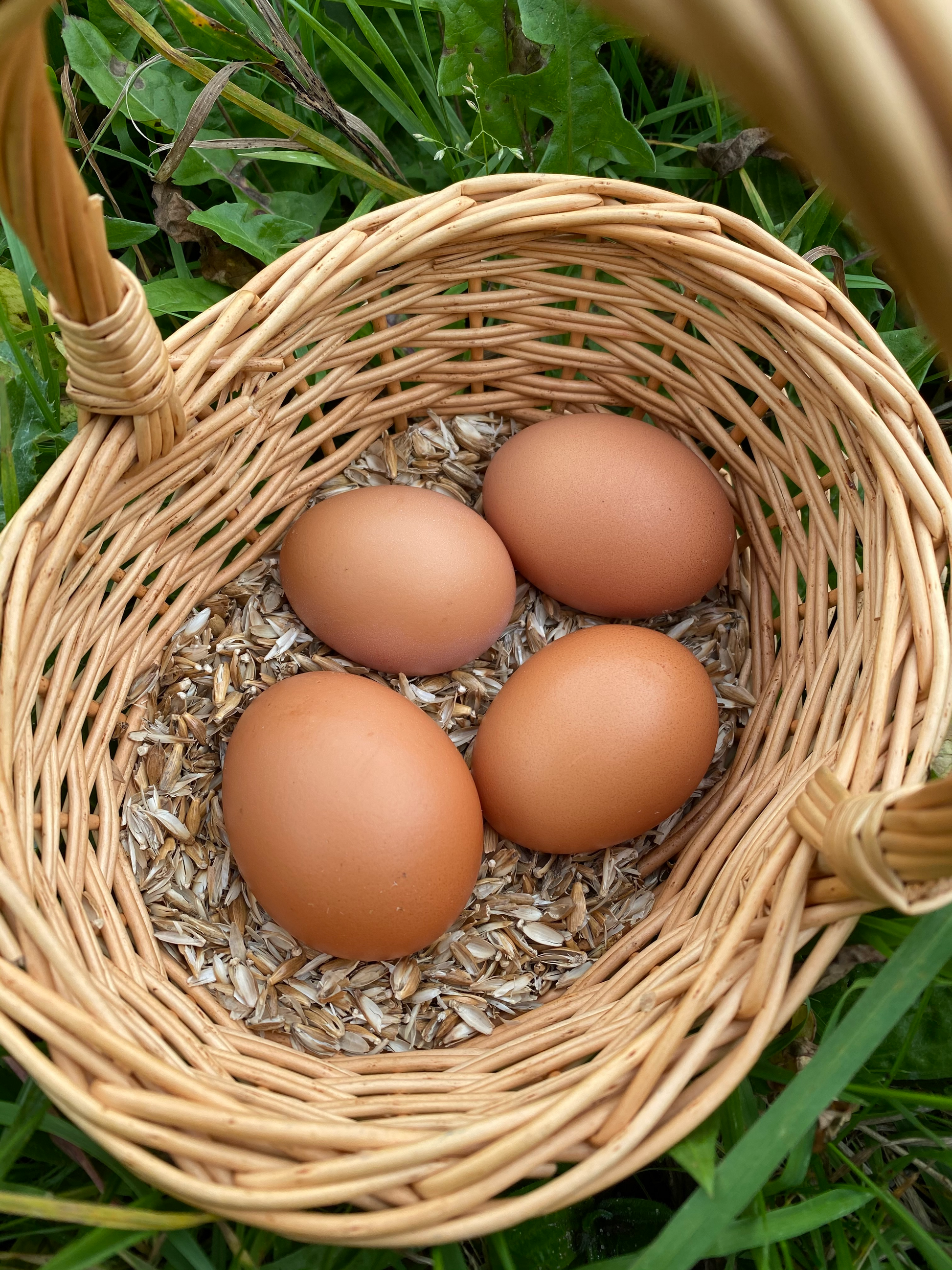 Våra ekologiska ägg - Med gott om plats att beta på, lever våra hönor glada och hälsosamma liv i vår äppelodling, vilket resulterar i ägg av hög kvalitet.
