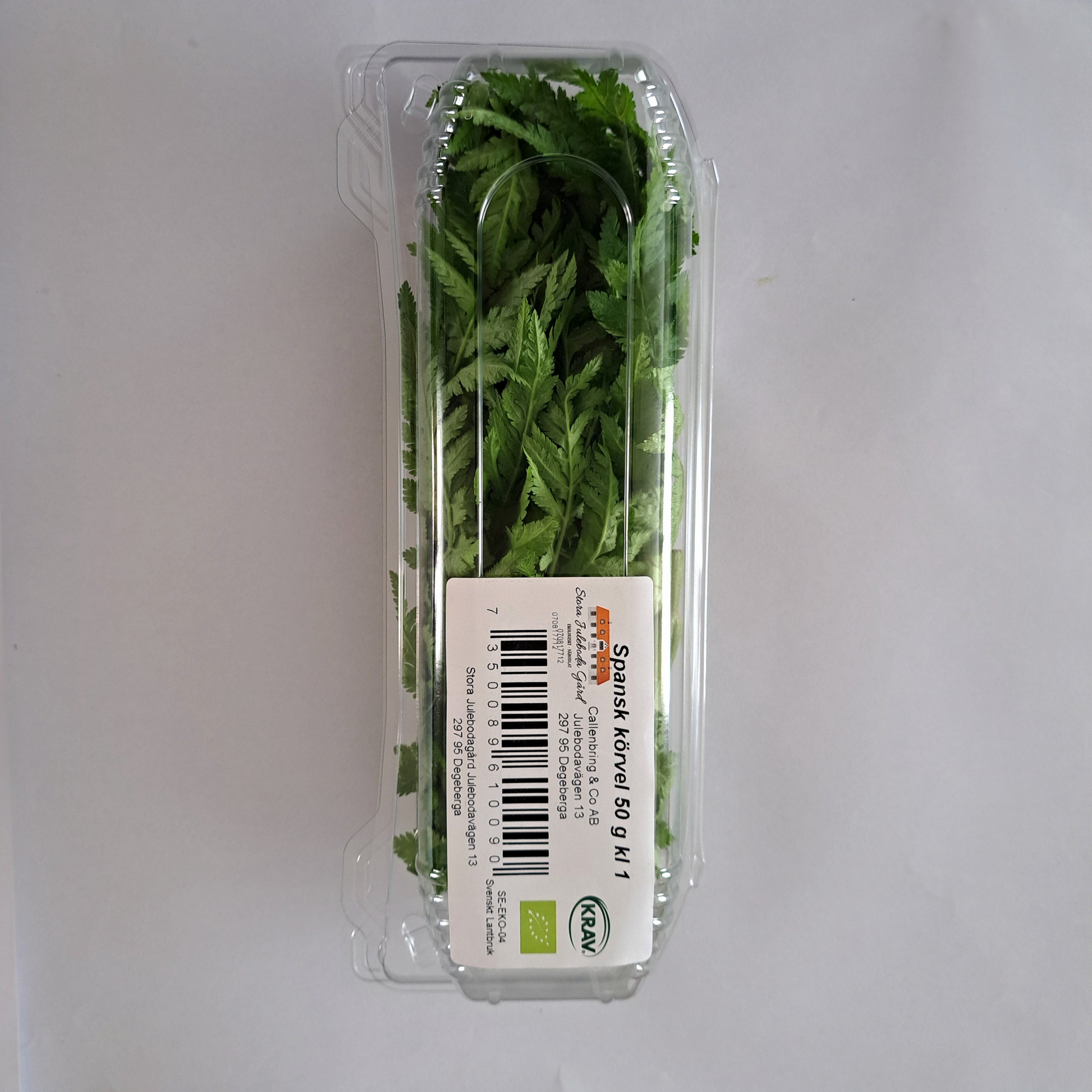 Vår ekologiska Spanska Körvel odlas med omsorg på vår gård för att säkerställa högsta kvalitet och färskhet. Den har en smak som kombinerar antydan av anis och persilja.